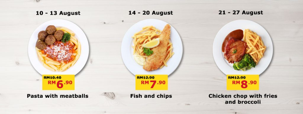 还有还有,逛街逛到肚子饿了,还可以到 IKEA 餐厅吃美食,从现在开始到 27/8/2017 ,每天都有不同的优惠套餐!我们最爱的 HOTDOG 现在也在举行特价优惠,3 份只需 RM 5!