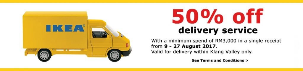 不仅如此,最叫人开心的是,连送货服务都有 50% 折扣!!这下,你不必担心买太多物品,没办法自己载回家啦!