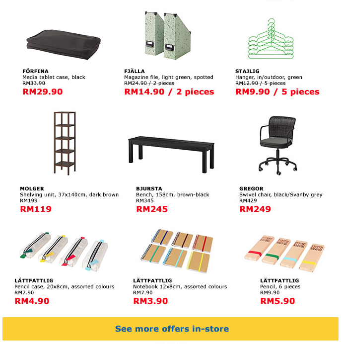 这项大减价活动从10/8/2017 – 27/8/2017期间举办,从桌子、站灯、椅子,到蜡烛、笔记本,统统都有高达 50% 的折扣!购买超过 RM 350,还有机会兑换一张价值 RM 20 的IKEA Gift Card!
