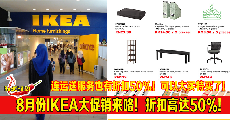 8月份IKEA大促销来咯!折扣高达50%还有礼物拿!连运送服务也有折扣50%!可以大买特买了!