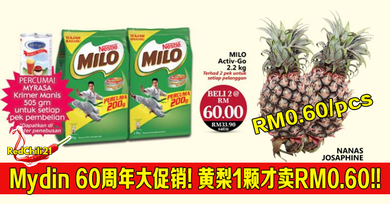 Mydin 60周年大促销!黄梨1颗才卖RM0.60!!