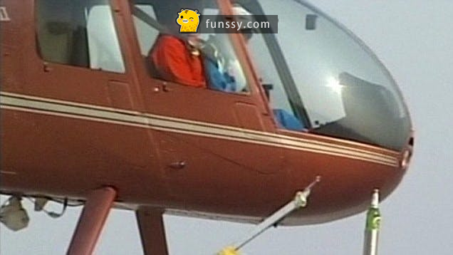 4. 最快用直升机开啤酒罐的纪录: 3分钟内开6罐啤酒