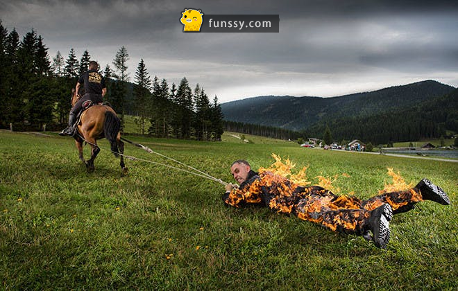 3. 身上着火同时又被马拖行的纪录: 490公尺