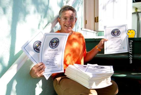 从1969以来他一共破了600多个世界纪录,包含: 一次跳最多开合跳的纪录、一小时内最多下的水底跳绳、製作全世界最大的铅笔等…