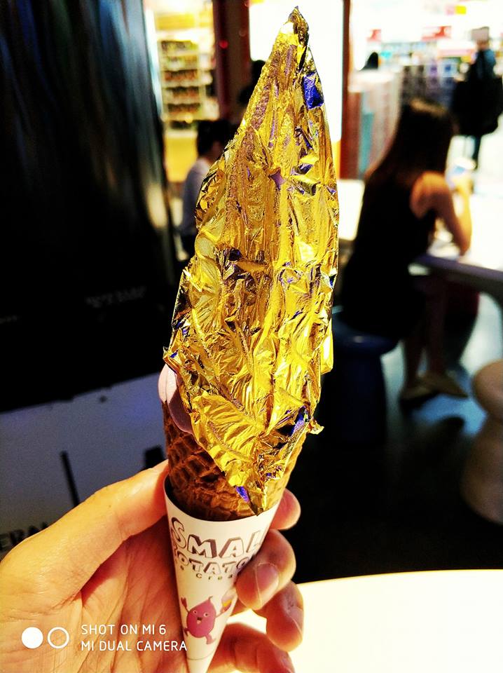 新加坡《联合晚报》报导,这几天浏览脸书或Instagram的网友们,或许时不时会看到好友上传一张张包有金箔的冰淇淋。