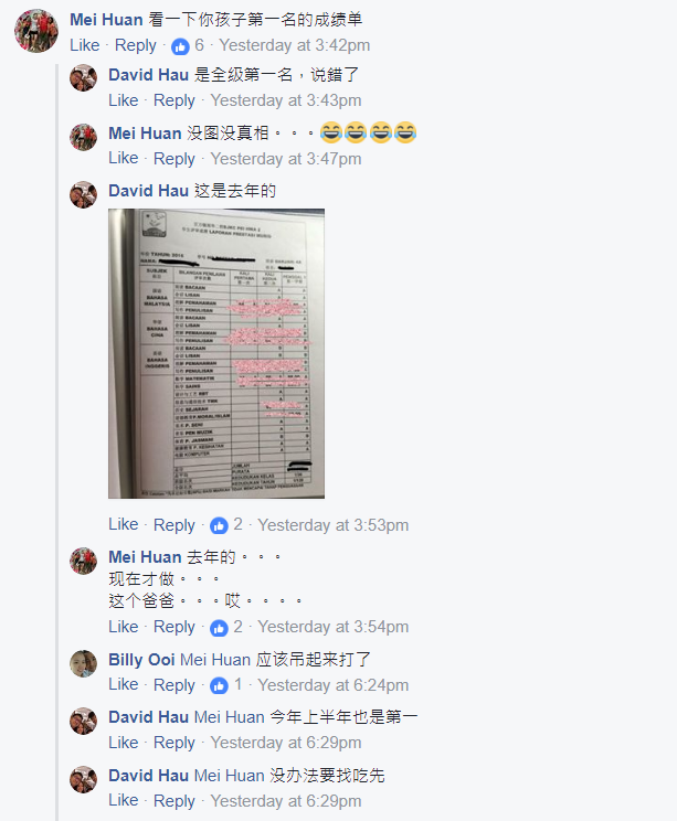 ▼ 这时以下这位网友留言要看David Hou 孩子的成绩单,因为网络上很多自己发帖自己爽的人太多了。