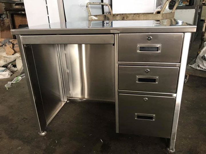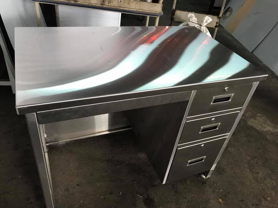 ▼ 白钢书桌的组图,看起来一点都不马虎,还有抽屉而且还可以上锁。