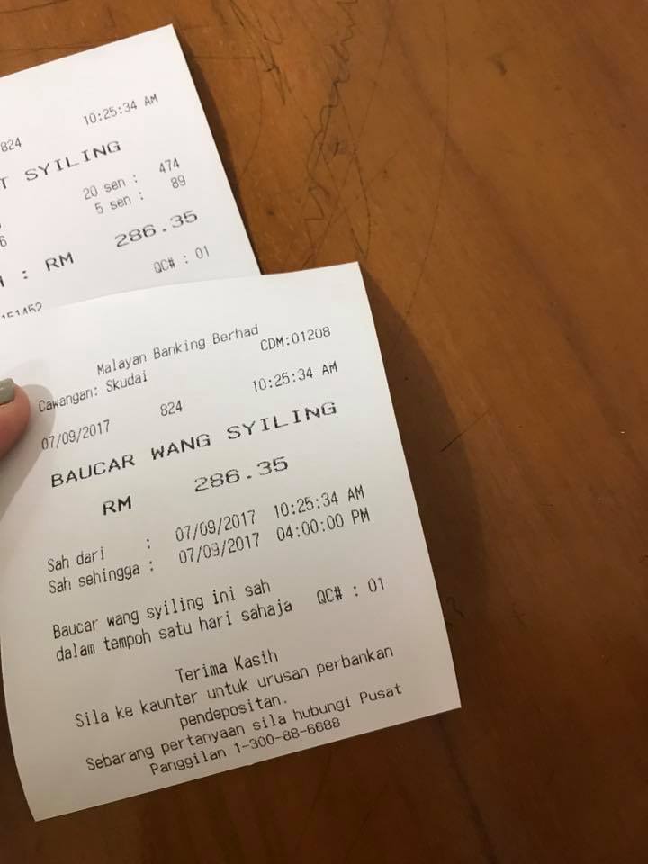 5. 等所有的硬币都存放后,记得拿单据哦。