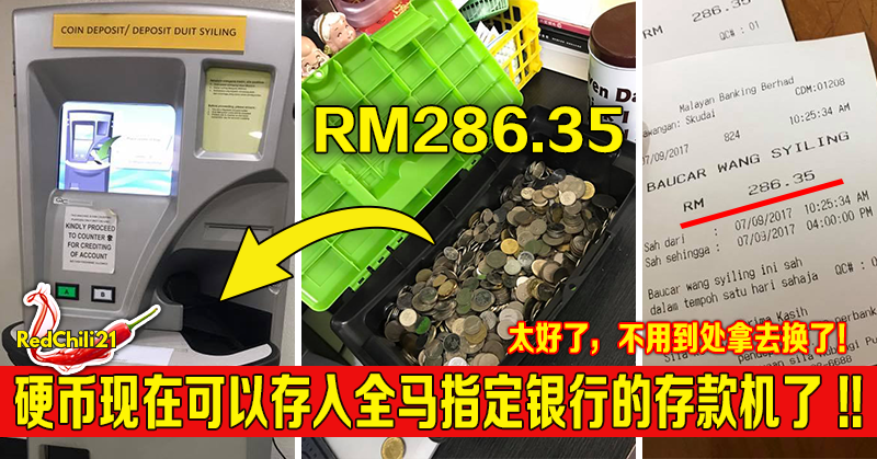 今早一位名叫朱静儿的女网友在面子书分享了把硬币存进银行的存款机里的贴文,马上得到了很多的赞,分享和留言。