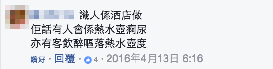 网上也流传过有人在热水壶内「方便」,而早年日本网站就有个调查,其中1条问题是:「有否在商务旅馆的电热水壶小便过?」结果在326人当中,竟然有12人的答桉是有!虽然未能确定受访者提供的答桉是否属实,但调查结果还是令人相当惊讶,谁会想像日本人也曾做过如此缺德的行为呢?