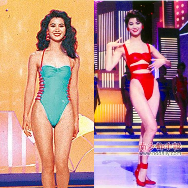 1990年,靓靓袁咏仪参选那届的泳装,小编真的不懂要怎么形容好~