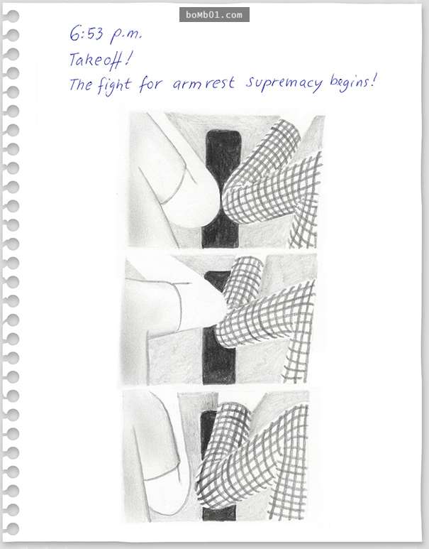 1. 下午6:53。起飞!座椅扶手争夺战正式开始!