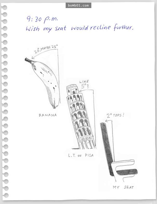 4. 下午9:30。希望座椅能够再倾斜一点。