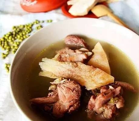 原料:老鸭、绿豆、土茯苓、姜、陈皮、盐