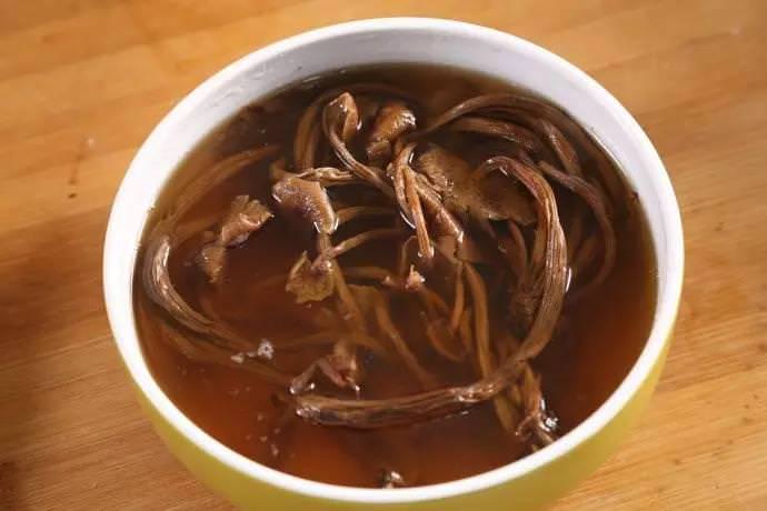 3.白玉菇(真姬菇)摘净用盐水浸泡15分钟后控水备用