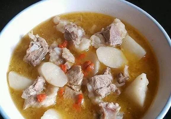 原料:净排骨500克、山药250克、芹菜25克。味精、花椒、胡椒粉、盐、酒、葱、薑各适量。