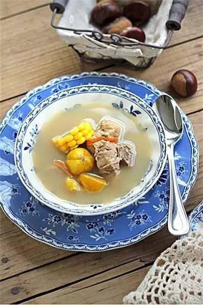 原料:嵴骨500g、板栗200g、甜玉米1个、陈皮2g、老薑1小块、盐少许