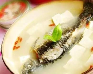 :鲫鱼一条,豆腐400克,黄酒5克,葱花薑片各三克,白玉菇、盐少许,食油30克。