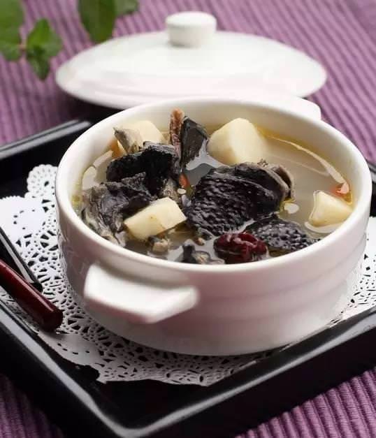 原料:乌鸡一隻、山药、红枣、薑片、盐适量。