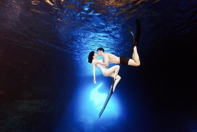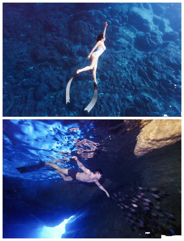 之前钟丽缇还晒出了自己和张伦硕在塞班岛的蓝洞潜水的照片,画面美轮美奂,有这样的照片也就不枉此生了吧,夫妻俩还上演甜蜜拥吻,虽然看不清脸,但是这样的画面还是极具震撼的。