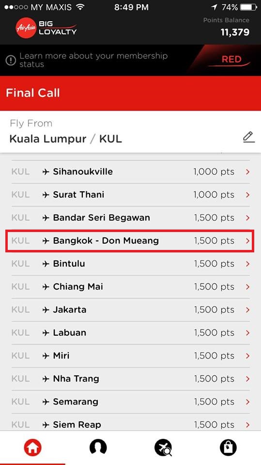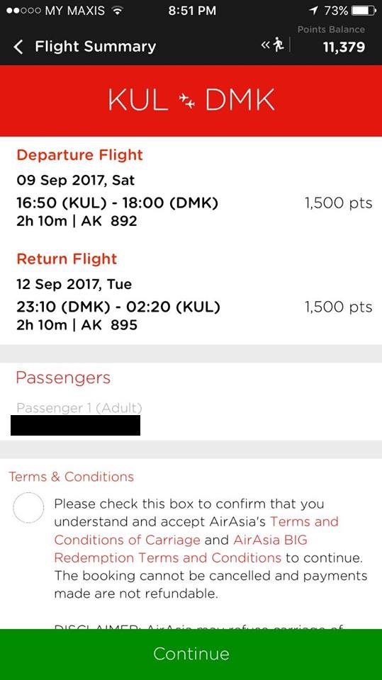 这项优惠只限通过Air Asia BIG预定,如何预定呢?只需有1,500pts即可预定这项优惠哟~