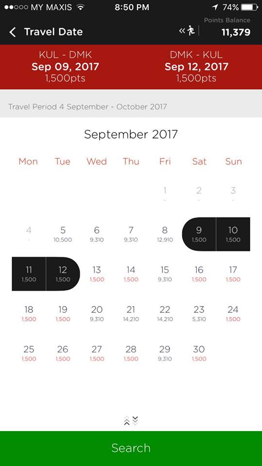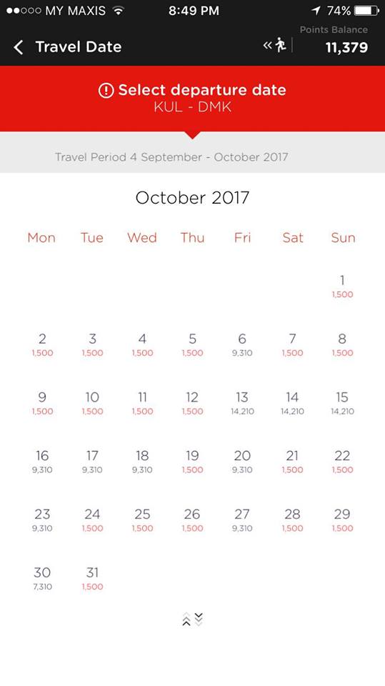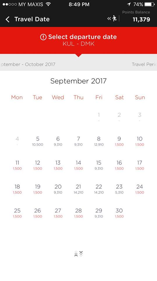 指定日期9月份 &10月份!下载AirAsiaBig的手机APP可以查看整个月份的“价钱表”