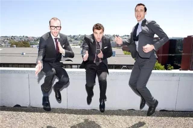 (图片来源) Airbnb三剑客合照。中间为 Brian Chesky,左手为 Joe Gebbia,右手为 Nathan Blecharczyk)