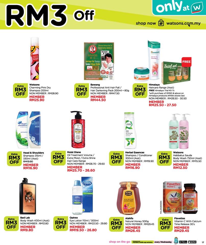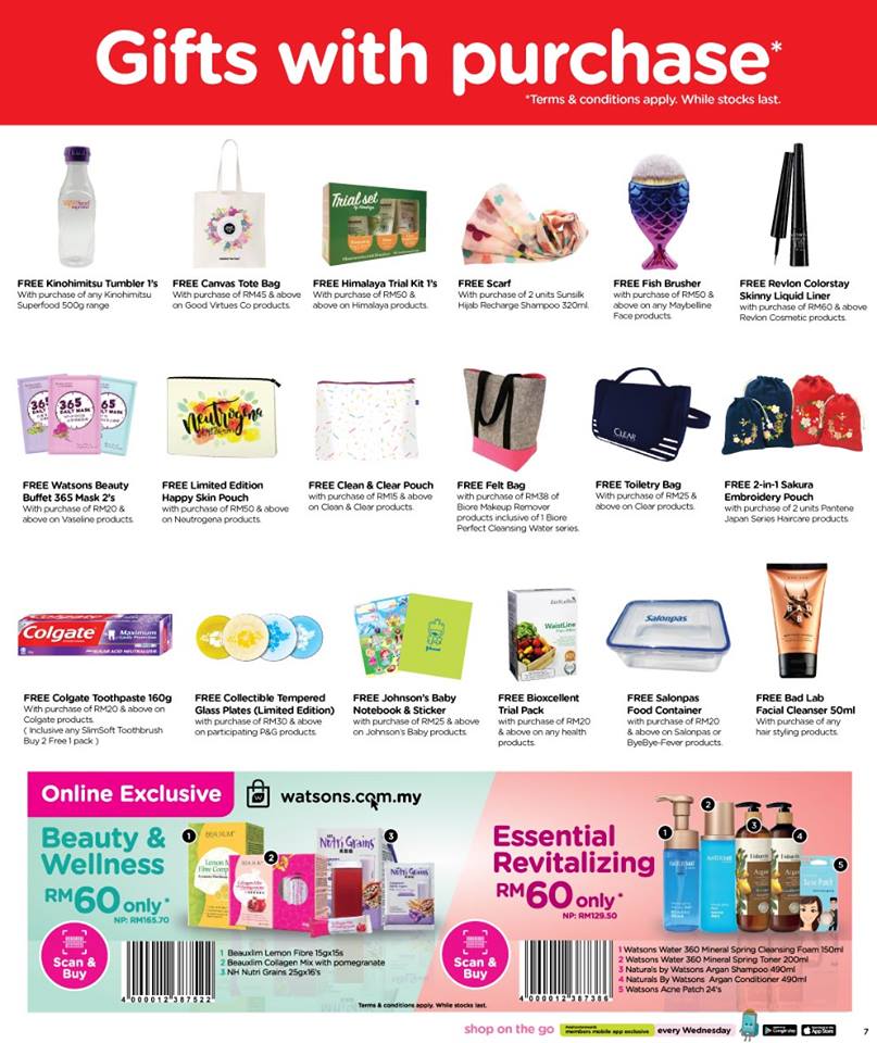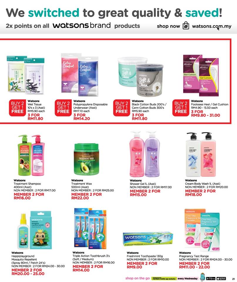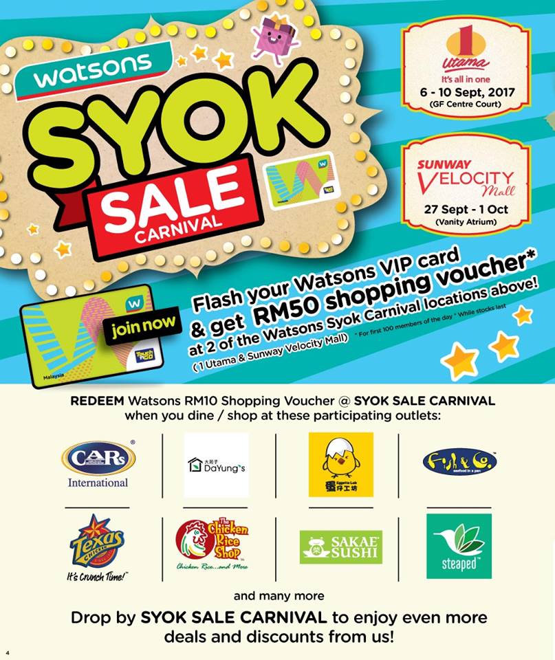各种各样商品大减价哦!而且还将在特定地点免费送出价值RM50 或 RM20 的Voucher 给 Watsons 会员们!