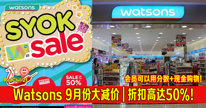 Watsons 9月份大减价| 折扣高达50%!会员可以用分数+现金购物而且还送出Vouchers!