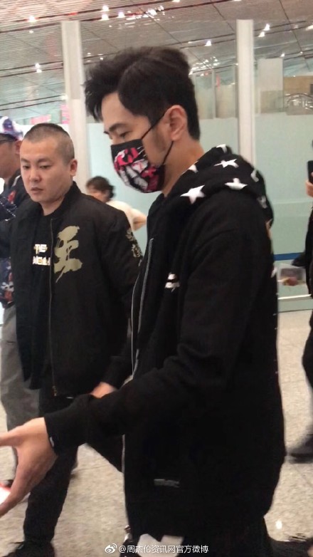 周杰伦资讯网官方微博:#周杰伦出道17年# 周杰伦到达北京机场,要飞温哥华,陪大嫂拍电影了[爱你] ​​​