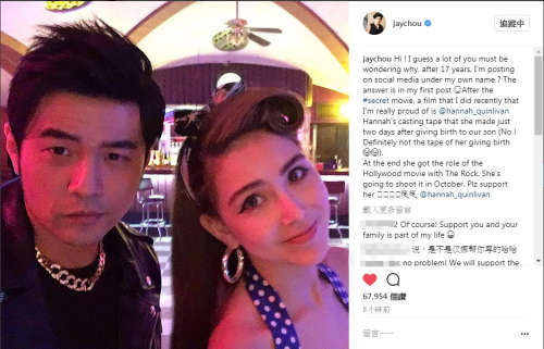 周董凌晨晒出与昆凌的甜蜜合照,并首度全程撂英文,他写道「嗨,我想你们一定觉得好奇,为什麽出道17年了,会用自己的名字开通社群软体?答案就在IG首PO文里」。