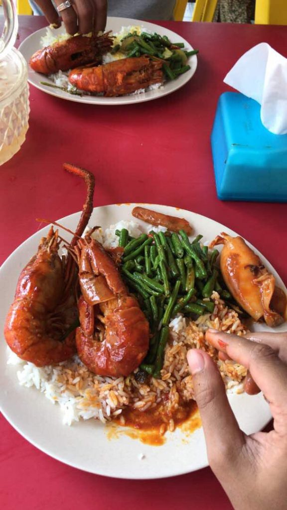 她还说第一次来彭亨,看到这间普通的路边摊就停下来吃饭所以并不知道这虾在这里卖那么贵。