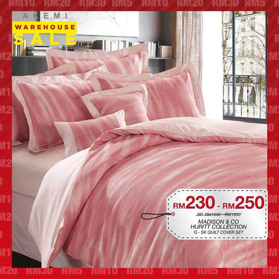 诱人的AKEMI Warehouse Sale 将从10月5日至8日在The 19 USJ City Mall, Subang Jaya举行,到时大家又有机会以超低价格购入高品质家居用品如枕头、床单、抱枕等!!这次AKEMI Warehouse Sale所促销的产品包括了来自Winny, Favorita, Cannon, Madison & Co等品牌的家居用品。