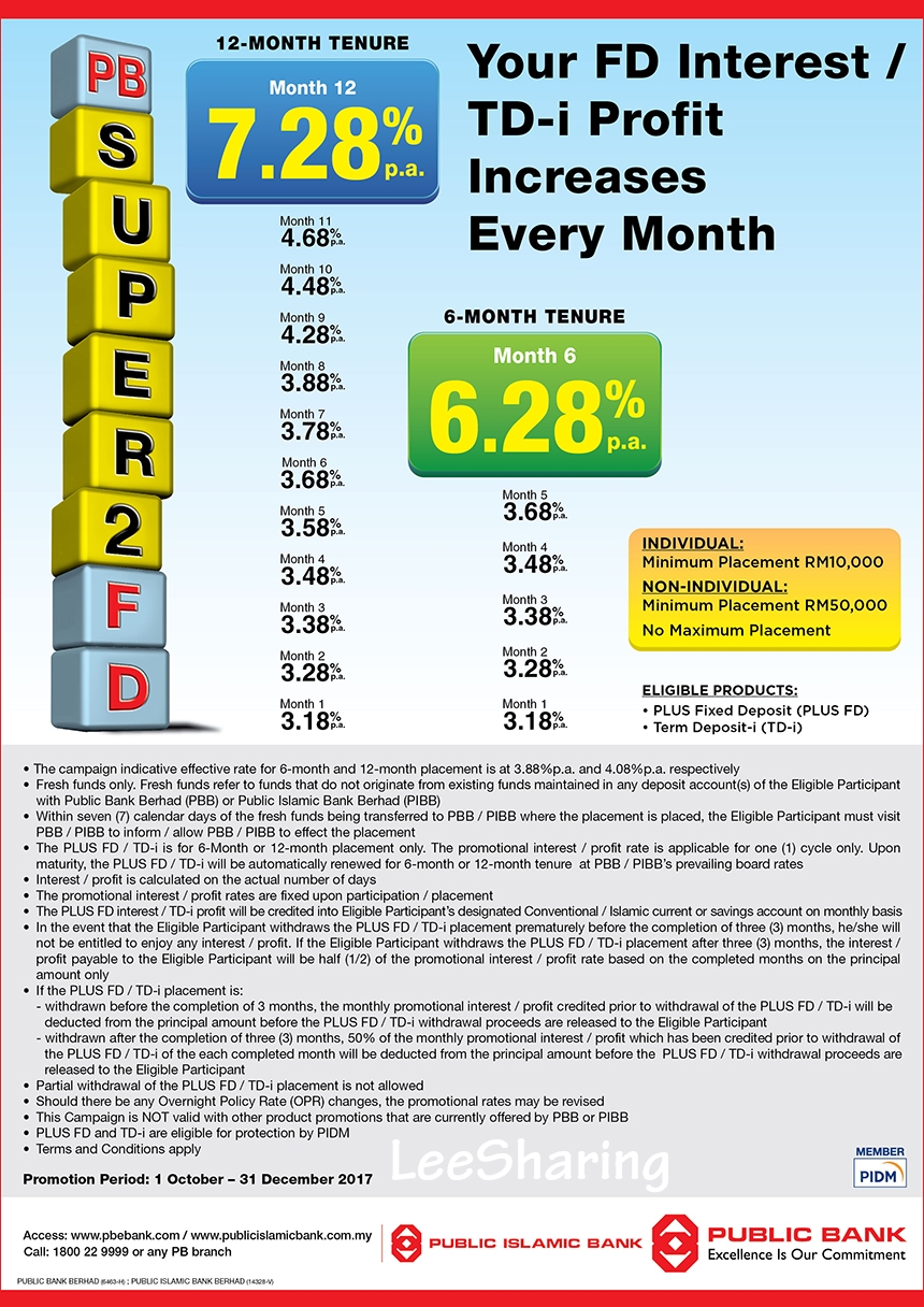 这个10月份Public Bank推出最新定期存款优惠——【PB Super 2FD / TD-i Campaign】!【PB Super 2FD / TD-i Campaign】的每月利息都不同。