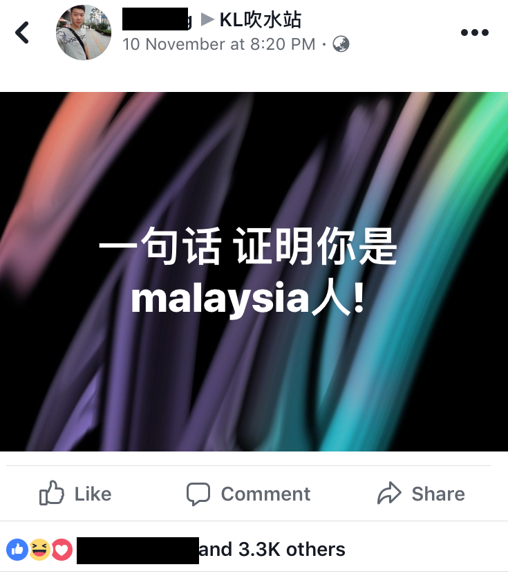 日前,有位网友在KL吹水站发帖问写道:一句话证明你是 Malaysia 人,网友们纷纷留言来证明自己就是100%的马来西亚人。