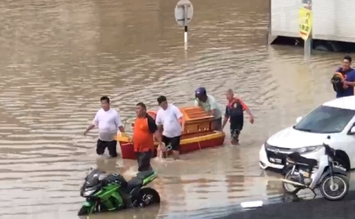 不愿具名的死者家属透露,在殡葬业者的安排下,义务消防队出动救生船,协助丧家把灵柩从丧府运至水位较低的路段,再由罗里运送至卫生所,由船只运载的路程大约为一公里。