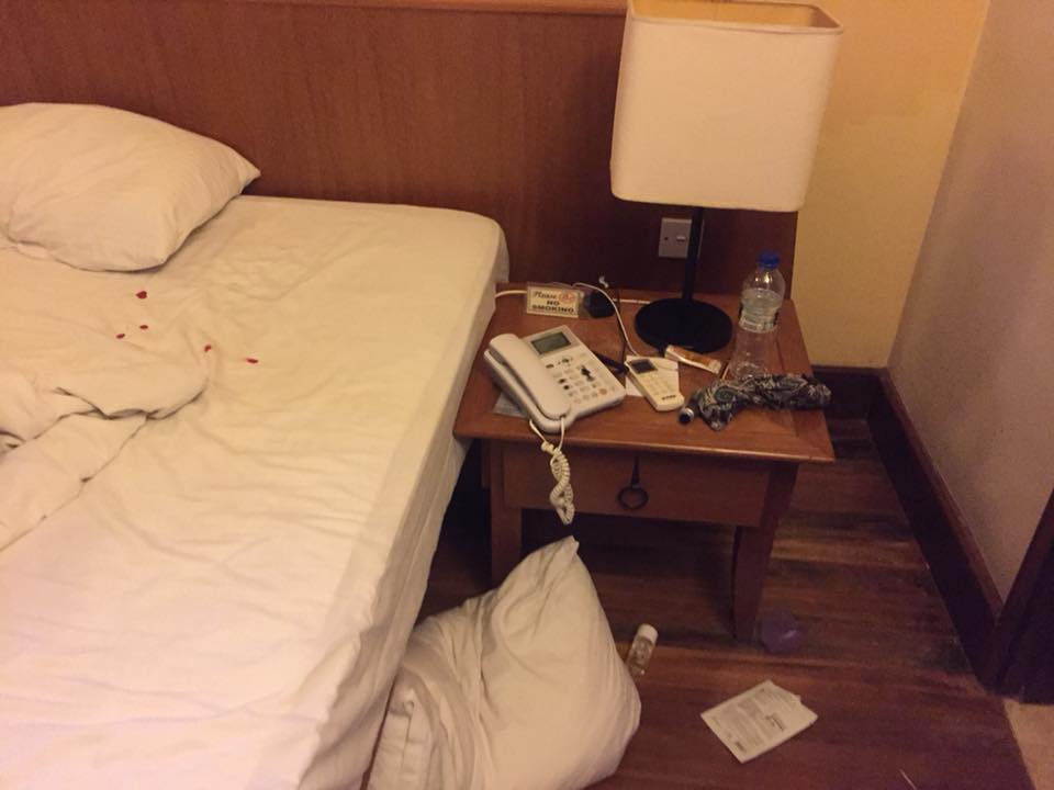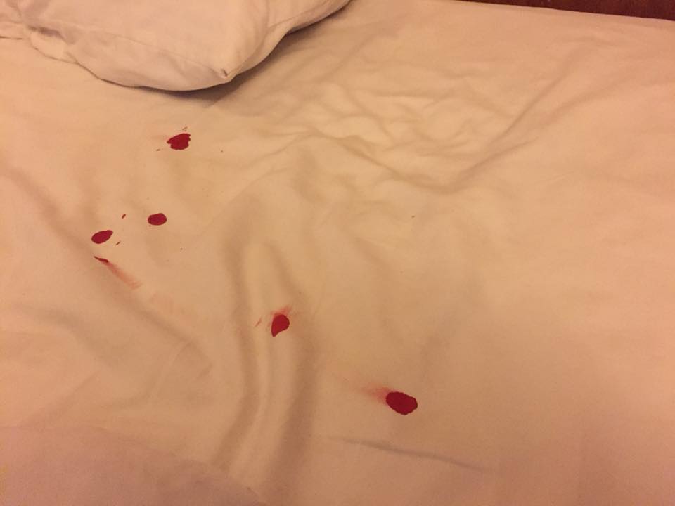 I request immediately check out. The same fellow(suspect) send back to my room and I started my packing. And took the stained bedsheet with me , the only evidence.
