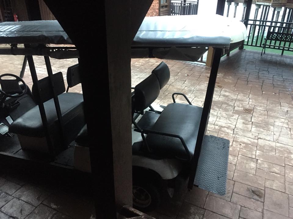 I took my phone and my selfie stick (weapon )to chase him . Only one buggy park in-front my room.