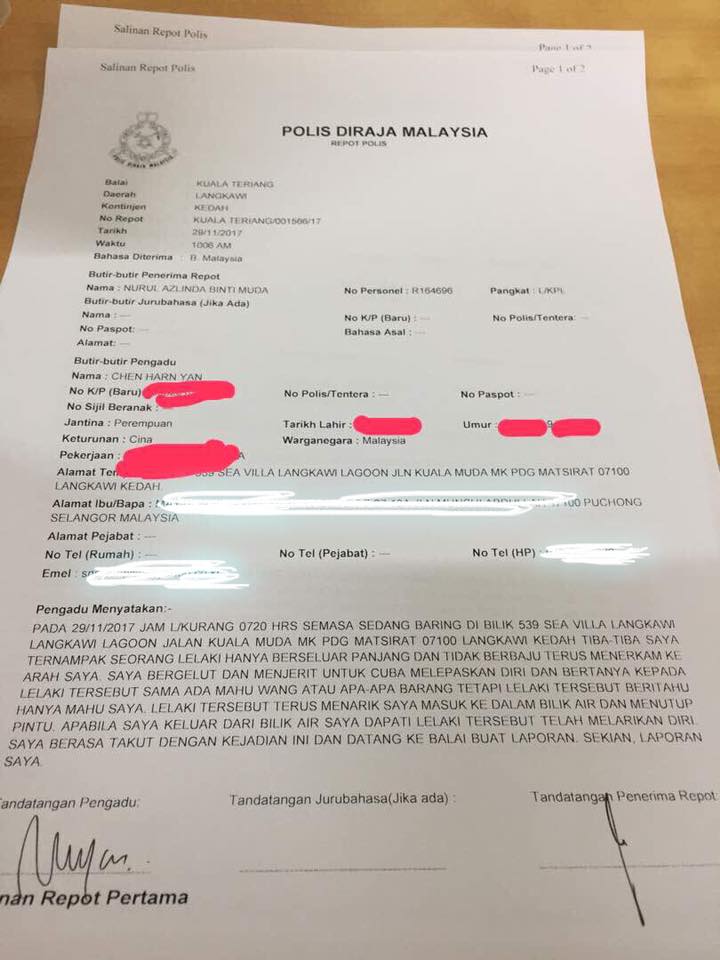大马美女独自一人入住Langkawi Villa水上屋差点被强奸!嫌犯竟然只有17岁还是其酒店的员工!