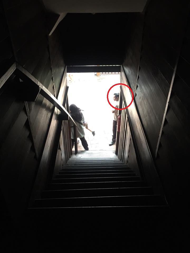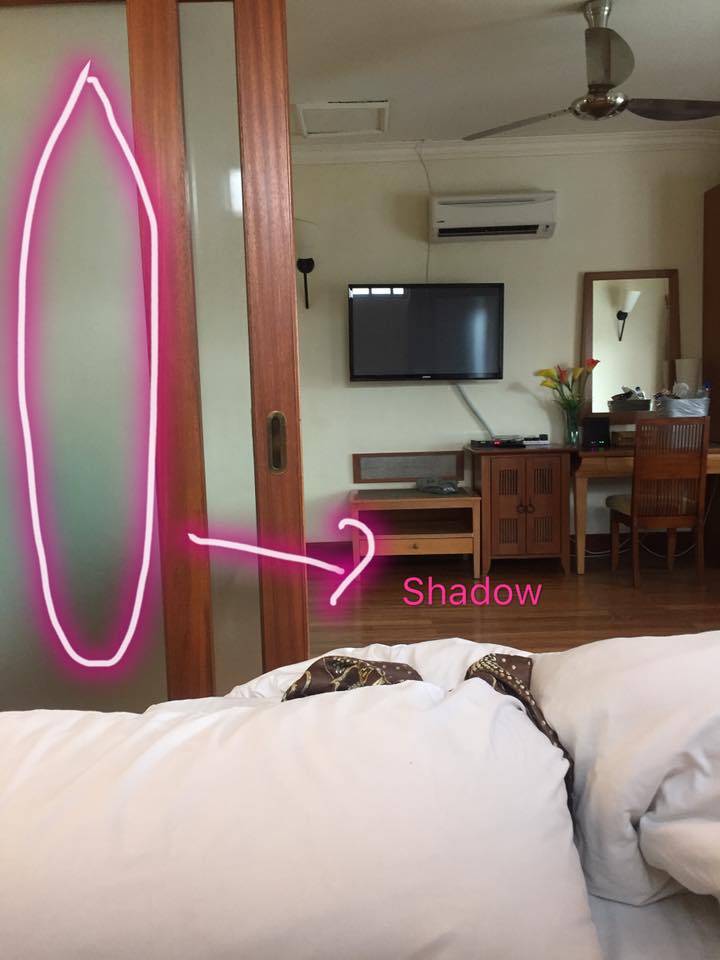 I noticed a black shadow behind the glass panel . “Who are you “ I have no idea why I asked . It can be ghost or housekeeping .