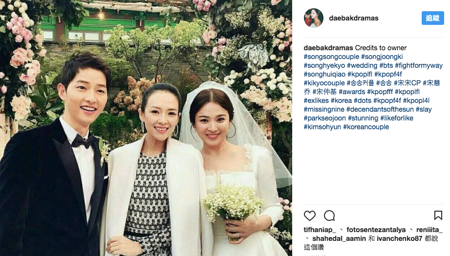 ▼ 章子怡曾经与宋慧乔合作拍电影,二人关系匪浅,算是婚礼上的中国代表!