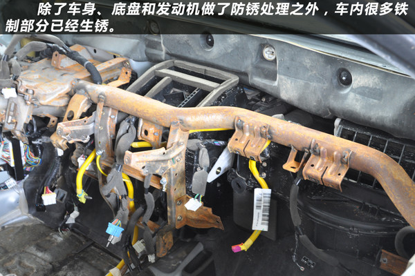 6、检查底盘:如果一些铸铁件(如排气管和螺栓等部件)产生严重锈蚀,也是泡水的证据。