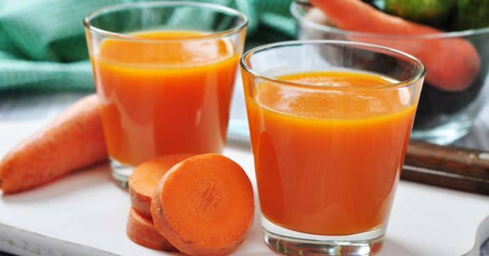 2)平温洋葱胡萝卜汁(适合虚寒体质) 材料:洋葱50克,红萝卜50克,冷开水100ml 做法:洋葱去皮洗净切片,胡萝卜切块,加入洋葱,凉开水打成汁。