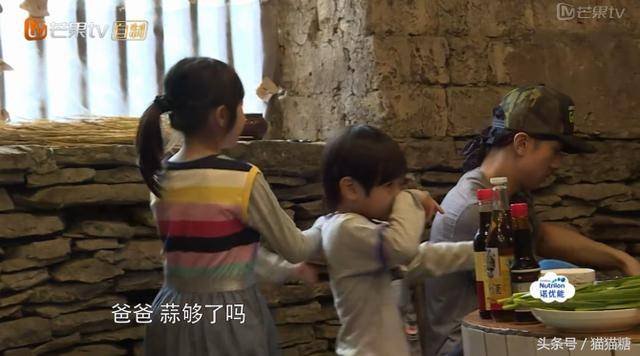 还有一个细节,当时吴尊在做饭的时候,让老婆帮忙切蒜,等老婆把蒜切好之后,吴尊就在她旁边,为什么她还让neinei去问爸爸蒜够不够?