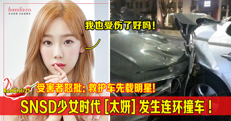 韩国少女时代队长太妍28日晚发生车祸,因为不小心而追撞两部前车,其中一名受害者在自己的Instagram上传事发经过,照片有车头、车尾都严重损毁,显示冲撞力道不小,但她批评因为对方是艺人就先搭上救护车,让她非常不满忍不住上网抱怨:「明明是加害人为何像是被害者一样」。