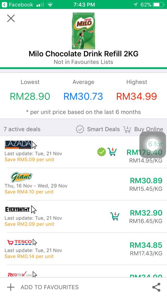 以下是根据 SmartShopper App 显示的 2kg milo 的价格。