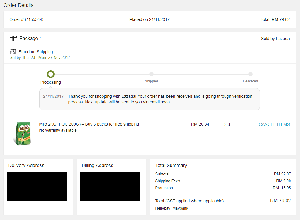 所以最后3包milo 才 RM79.02, 意思就是1包才 RM26.34 还包邮送到你家门口。