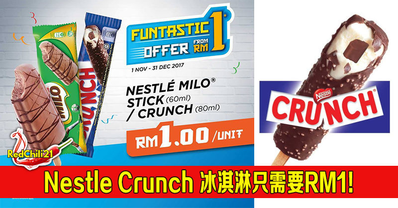 in 优惠, 分享, 首页 Nestle Crunch 冰淇淋只需要RM1! by RedChili November 1, 2017, 11:05 am BHPetrol 推出特别促销活动!冰淇淋、咖啡、饮料大促销!Nestle Crunch 冰淇淋只需要RM1!Nescafe 只需RM1.80! 促销活动:BHPetrol OrangeMania Offer 促销日期:1 November – 31 December 2017 促销地点:全马 BHPETROMARTS Terms and conditions apply. 赶快去你临近的BHP油站逛一逛吧! 全马BHP地点查询请点击这里。 Next post