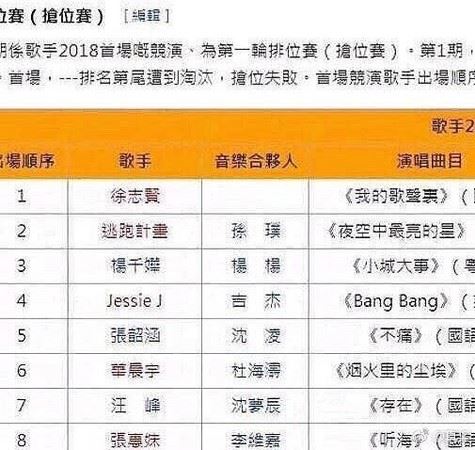 22日再度传出一份完整参赛人选,及演出歌单,每位歌手都将演唱自己经典歌曲。《歌手2018》的维基百科上更已公布赛制及首集参赛歌手。