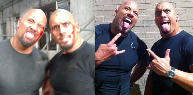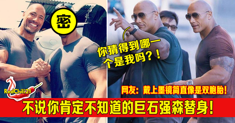 甚至许多网友说,泰诺伊戴上了眼镜,跟强森就是双胞胎,你能看出来哪个是真强森吗?或许当你看到电影中戴着眼镜的强森,就是这位泰诺伊先生扮演的。